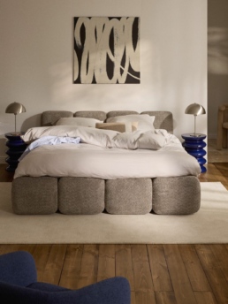 Le « Bubbly Bed » se distingue par son design original et contemporain, alliant confort et élégance. Avec ses lignes douces et son capitonnage raffiné, il crée une ambiance chaleureuse et accueillante dans votre chambre à coucher. Disponible dans une large gamme de tissus et de couleurs, le Bubbly Bed s’adapte à tous les styles et préférences, permettant à chaque client de personnaliser son lit selon ses envies. Que vous optiez pour des teintes neutres et subtiles ou des couleurs plus vives et audacieuses, ce lit apportera une touche d’élégance et de modernité à votre espace, transformant votre chambre en un véritable havre de paix.