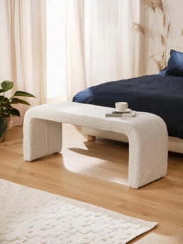 L’Eva Bench est un meuble élégant et moderne, conçu pour apporter à la fois confort et style à votre intérieur. Sa structure est réalisée en bois HDF, un matériau solide et durable, assurant une grande résistance et longévité. Le banc est habillé d’un tissu au choix, soit bouclette pour une texture douce et chaleureuse, soit velours pour une touche de sophistication et de luxe. Ces tissus sont disponibles en différentes couleurs, permettant d’adapter le banc à tous les types de décoration.