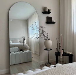 Le miroir arqué sans cadre (frameless arched mirror) se distingue par sa simplicité moderne et épurée. Sans bordure ni cadre, il met en valeur la forme élégante de son arc tout en s’intégrant parfaitement dans tous les styles de décoration. Ce miroir apporte une touche de légèreté et de fluidité à l’espace, créant une ambiance à la fois sophistiquée et aérée. Son design minimaliste permet de l’adopter aussi bien dans des intérieurs contemporains que dans des ambiances plus classiques, tout en offrant une réflexion claire et sans obstruction.