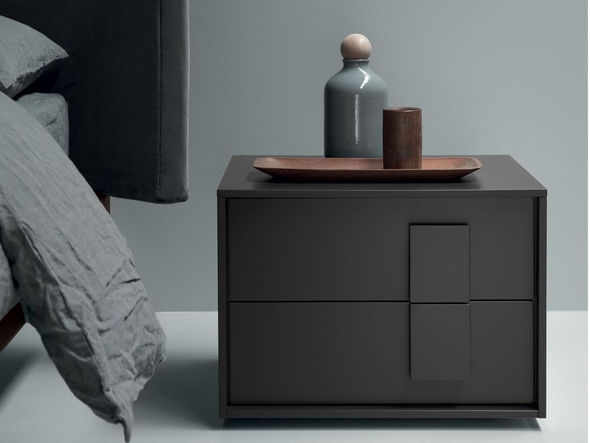 Cette table de nuit au design contemporain se distingue par ses lignes épurées et son style minimaliste. Conçue en bois avec une finition mate , elle s’intègre parfaitement dans un intérieur moderne et sobre. Dotée de deux tiroirs spacieux , elle arbore un système d’ouverture original avec des formes géométriques en relief qui ajoutent une touche graphique et élégante.